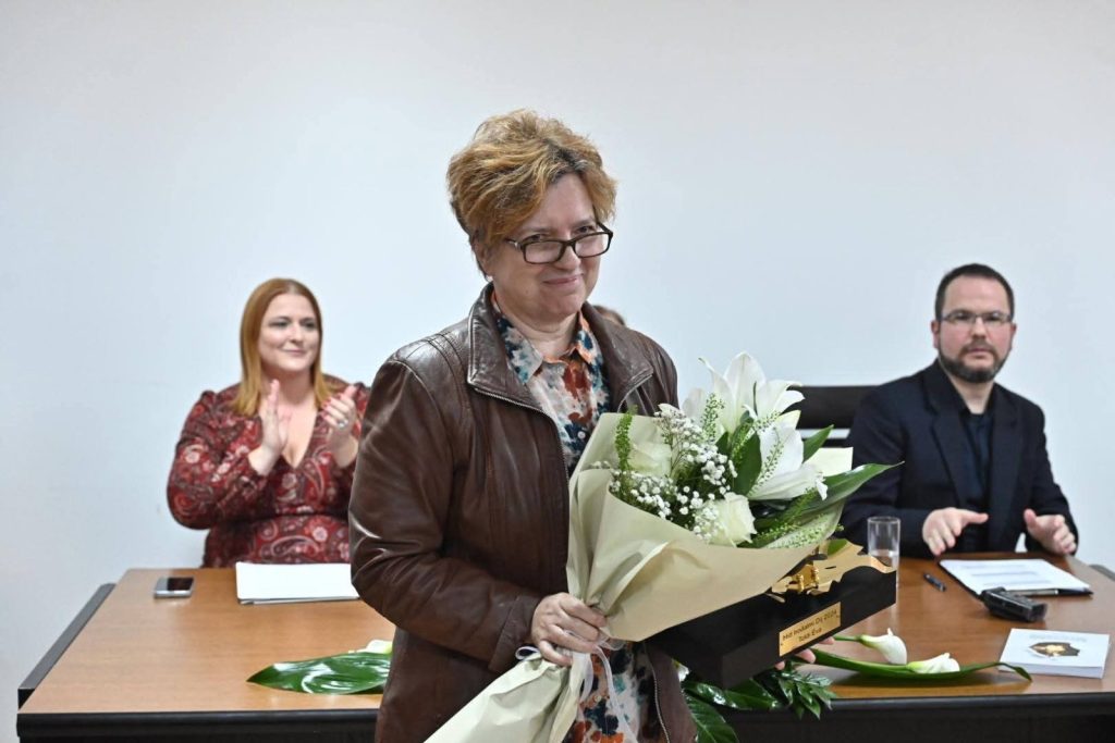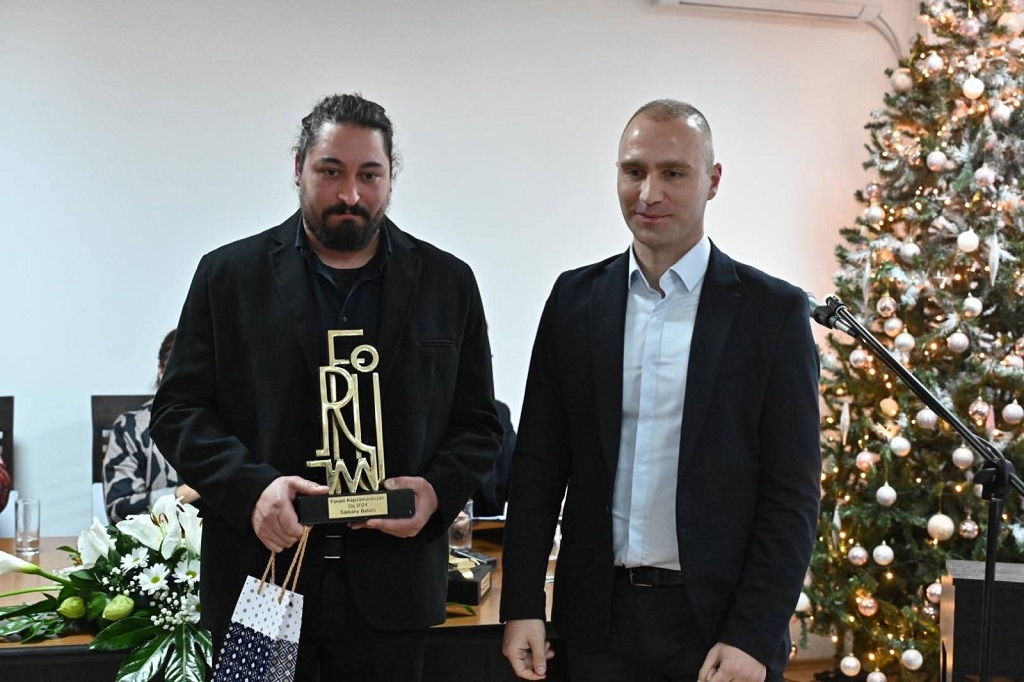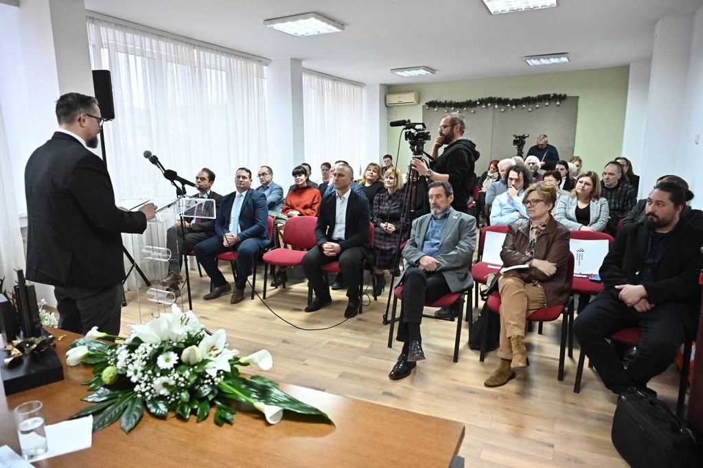 Нови Сад, 15. децембра 2025. – Помоћници покрајинског секретара за културу, јавно информисање и односе с верским заједницама Невена Баштовановић и Золтан Кудлик присиствовали су завршној свечаности и додели годишњих награда Издавачког завода Форум.