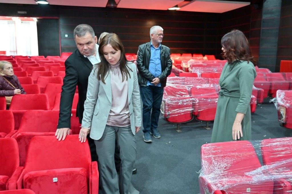 Нови Сад, 16. октобар 2025.- Покрајински секретар за културу, јавно информисање и односе с верским заједницама Александра Ћирић Бошковић обишла је данас радове на реновирању мале сале Културног центра „Брана Црнчевић“ у Руми.